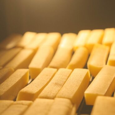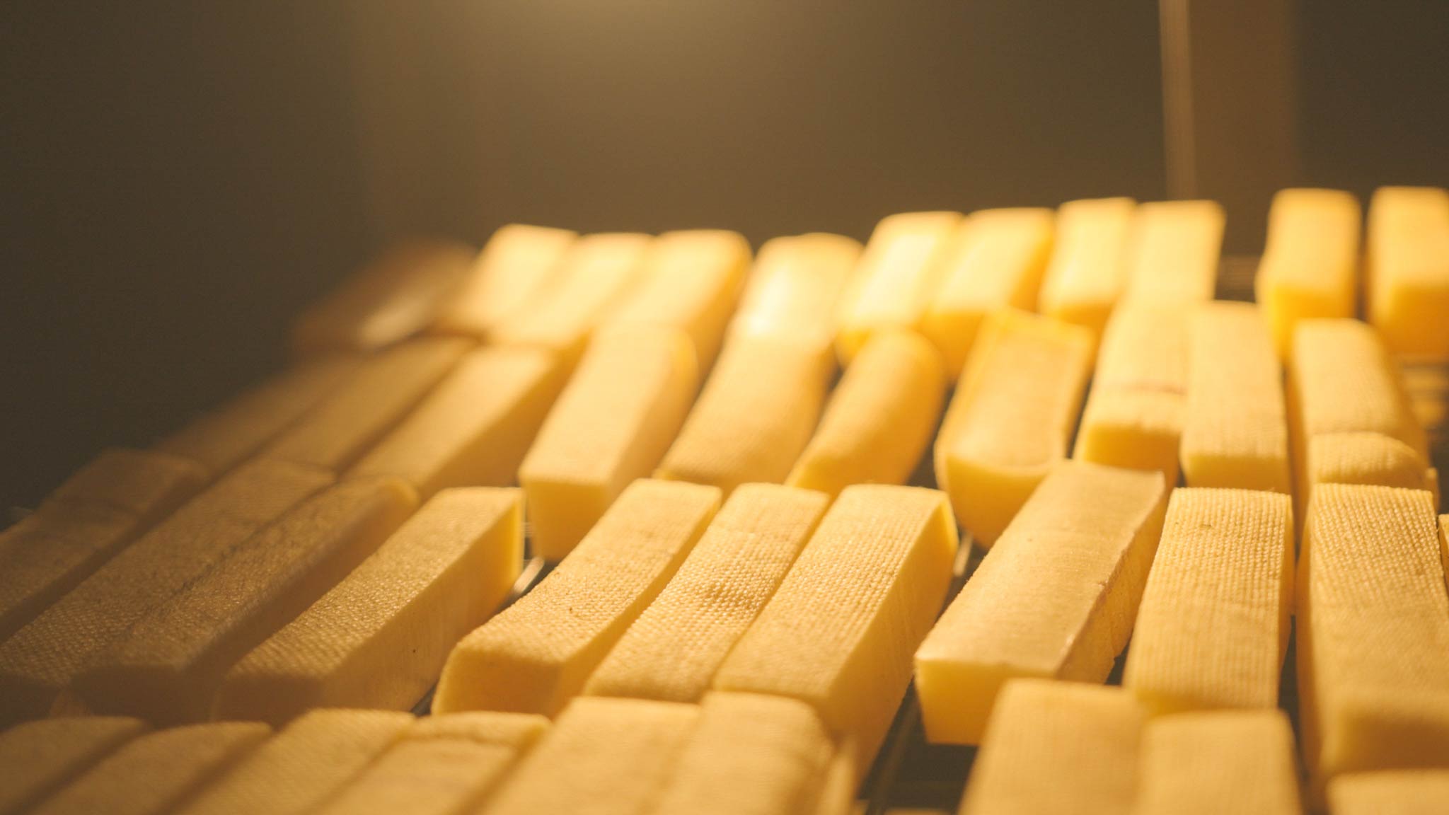The cheese curds are wrapped in jute cloth and pressed for three weeks using traditional weights. This slow moisture removal process, unchanged for centuries, creates the perfect dense texture that makes our chews so durable.